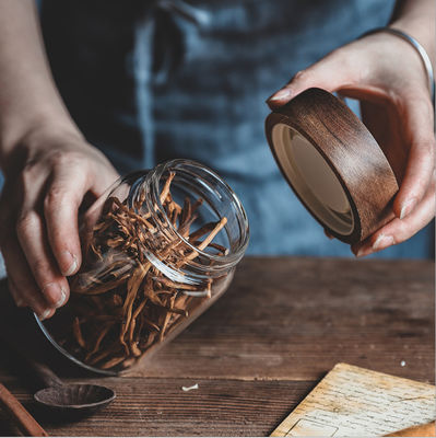 Ekologiczne niestandardowe logo Pusta drewniana pokrywka Przezroczyste pojemniki kuchenne Przezroczysty szklany słoik