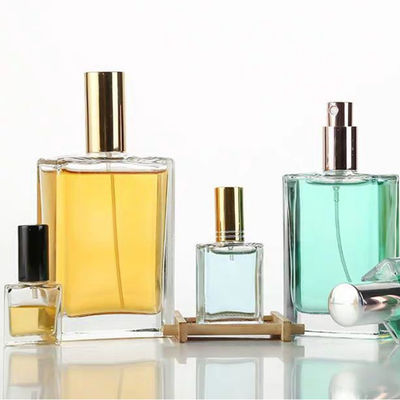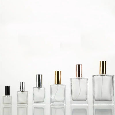 Jasne kwadratowe szklane butelki perfum w sprayu Szklane pojemniki kosmetyczne